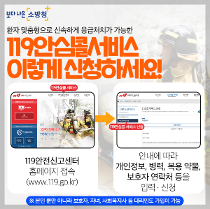 이 서비스는 기본적으로 장애가 있으신 분이나 고령자 및 독거노인 등에게 제공되는 서비스로 이해하시면 되실 것 같으며, 해당 분들에게 위급상황이 발생한 경우에 구급 대원이 질병 및 특성을 미리 알고 신속하게 출동할 수 있는 서비스이며, 당사자분들에게 맞춤형으로 응급처치와 병원이송이 가능한 서비스입니다. 이 서비스가 중요한 이유는 다름 아닌 골든타임 때문일 것입니다. 개인정보 및 병력과 복용약물 등에 대한 정보를 미리 입력해 둔 상황에서 그 정보를 토대로 119 상활실에서 출동할 경우 골든타임을 놓치지 않을 수 있다는 점이 가장 큰 장점이며, 등록자의 보호자분들에게도 이 서비스를 통하여 문자를 통해 등록자의 사고사실을 알 수 있다는 것입니다.