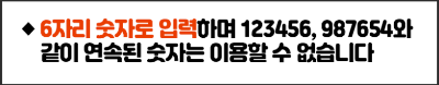 또한, 주의사항은 최초 등록할 때와 비밀번호 분실등으로 새로 등록이 필요하신 경우에는 통신사 본인인증을 거쳐서 등록하셔야하는 부분등이 있기에 비밀번호는 외우시기 편하신 6자리 숫자로 등록하시는 것을 추천드리나 연속된 숫자는 이용할 수 없다는 점 참고 바랍니다.