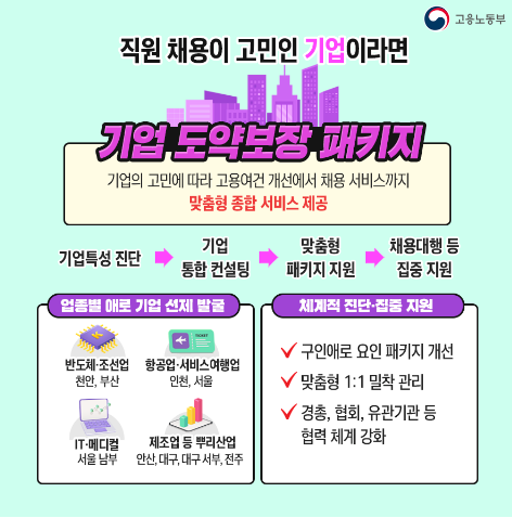 기업의 구인 애로 유형별로 채용서비스에서 고용 여건 개선에 이르기까지 종합적인 서비스를 제공하는 패키지를 도입하였습니다.